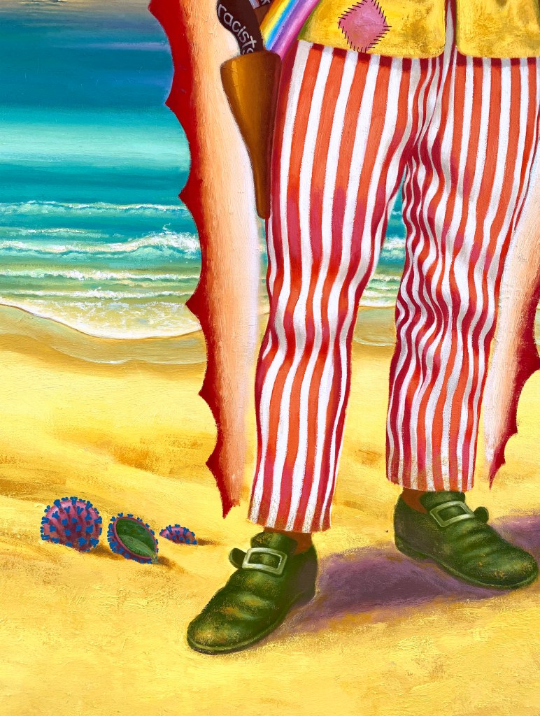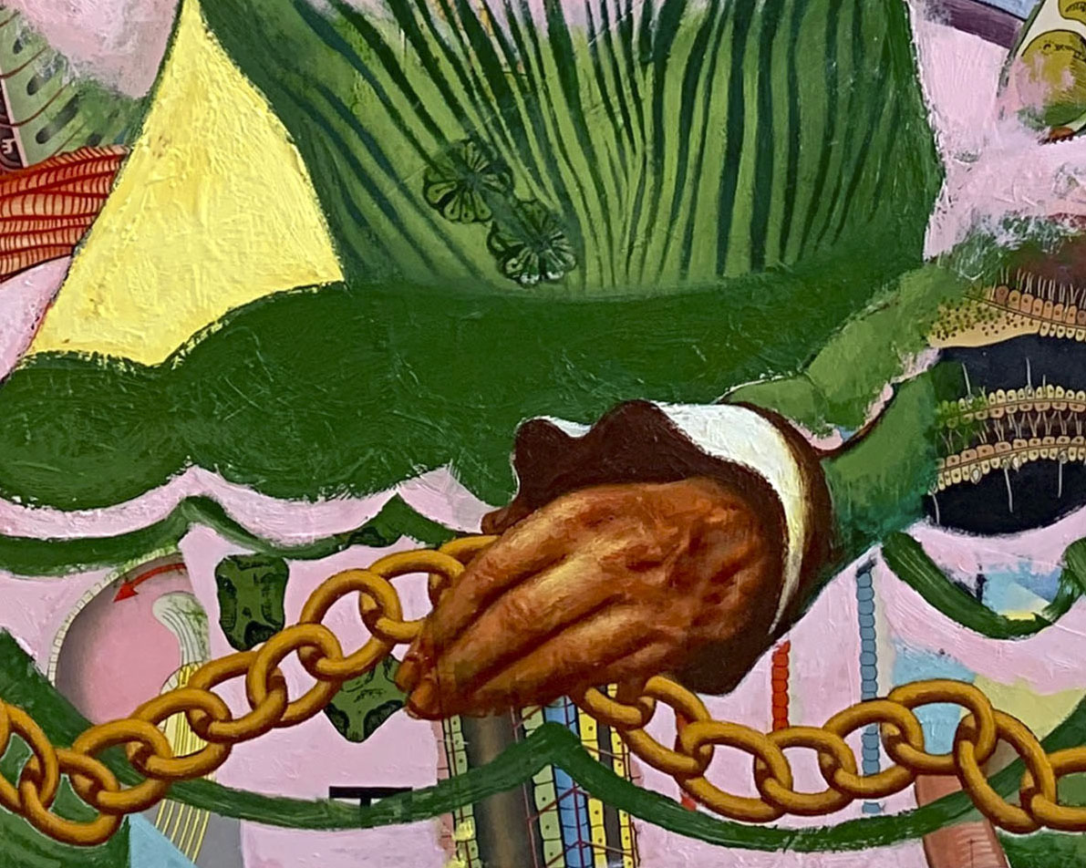 ‘Immigrants’ 2018 oil and mixed media on canvas. 94 x 49.5 inches