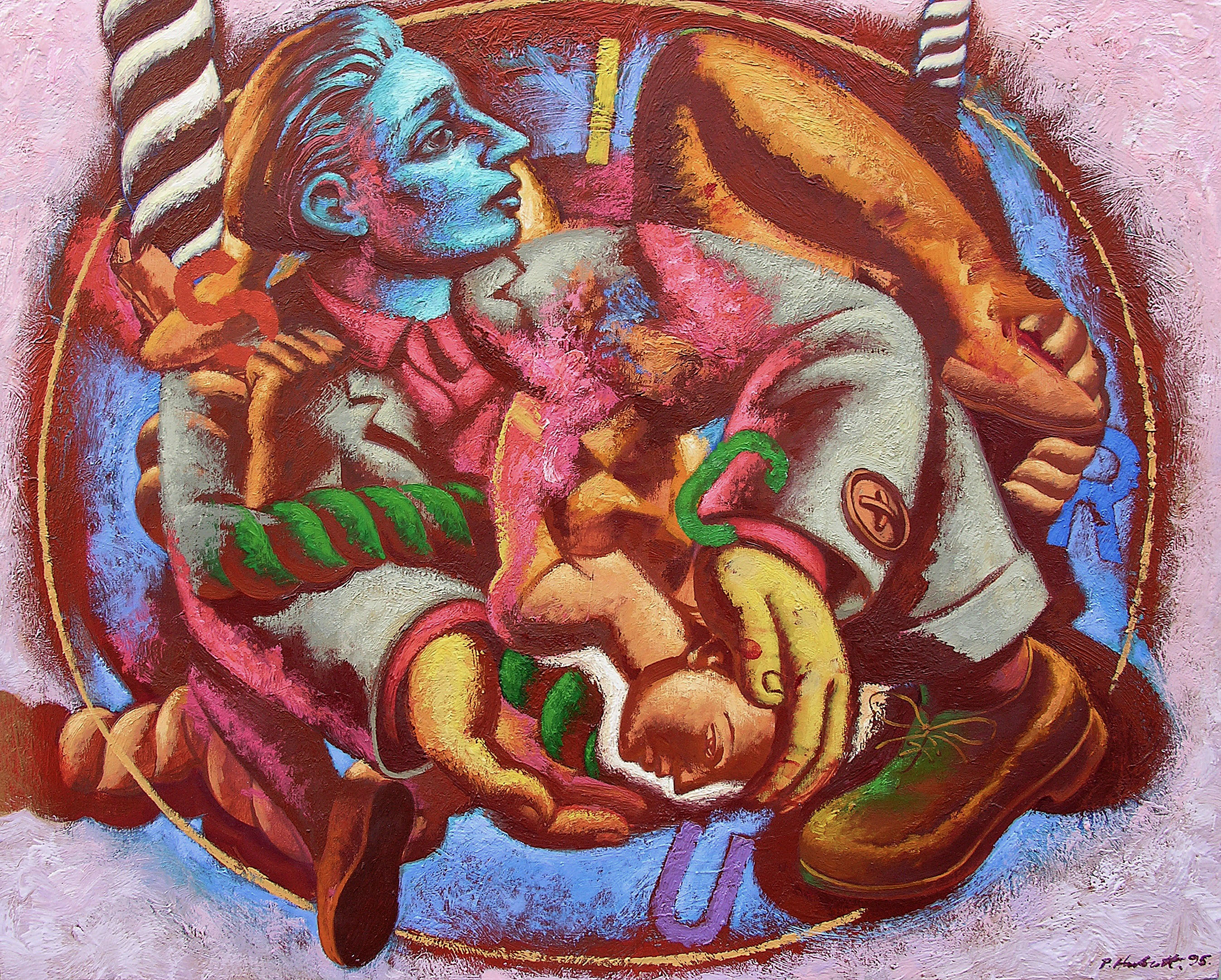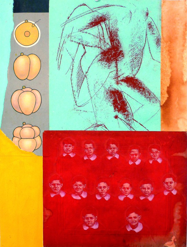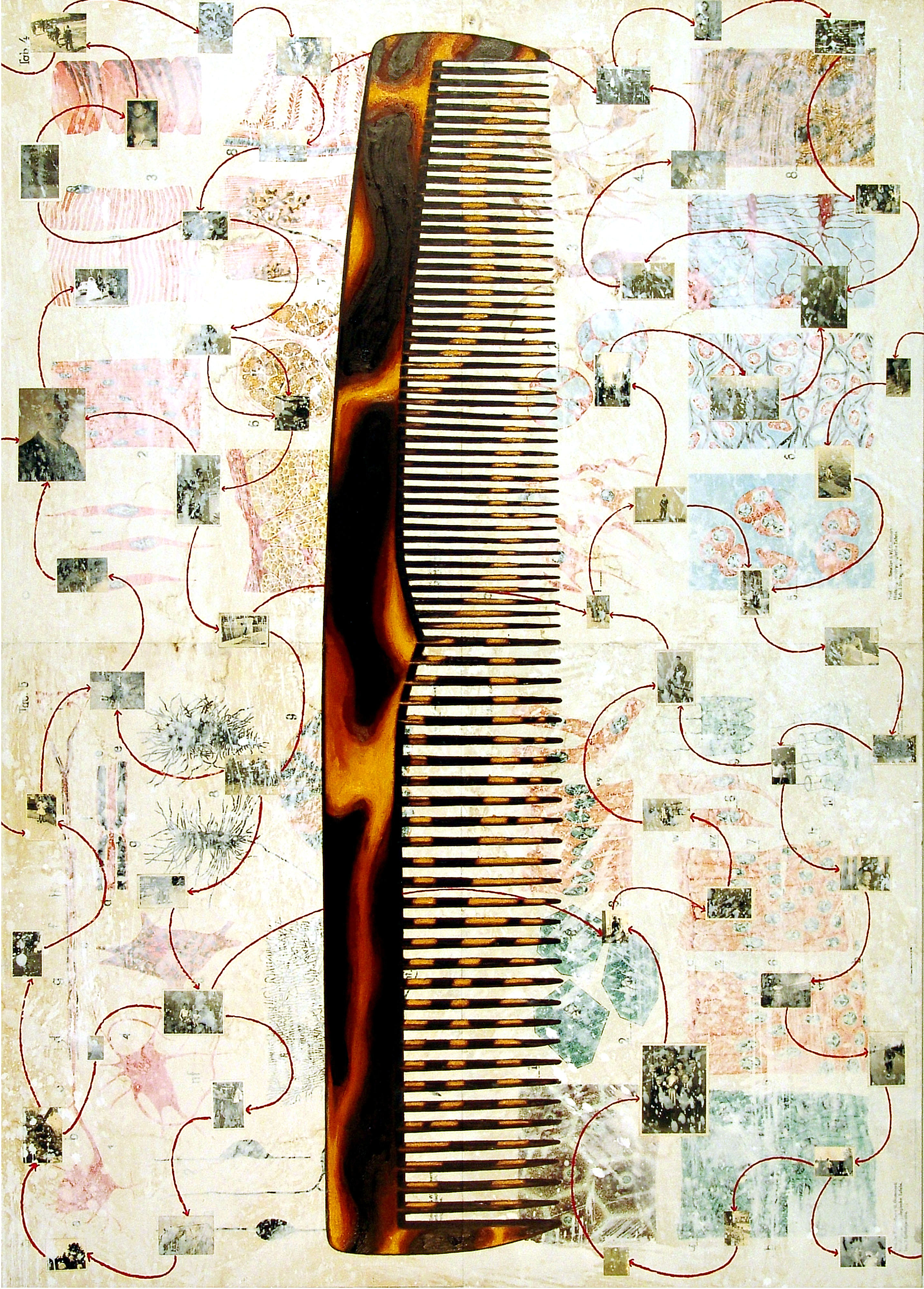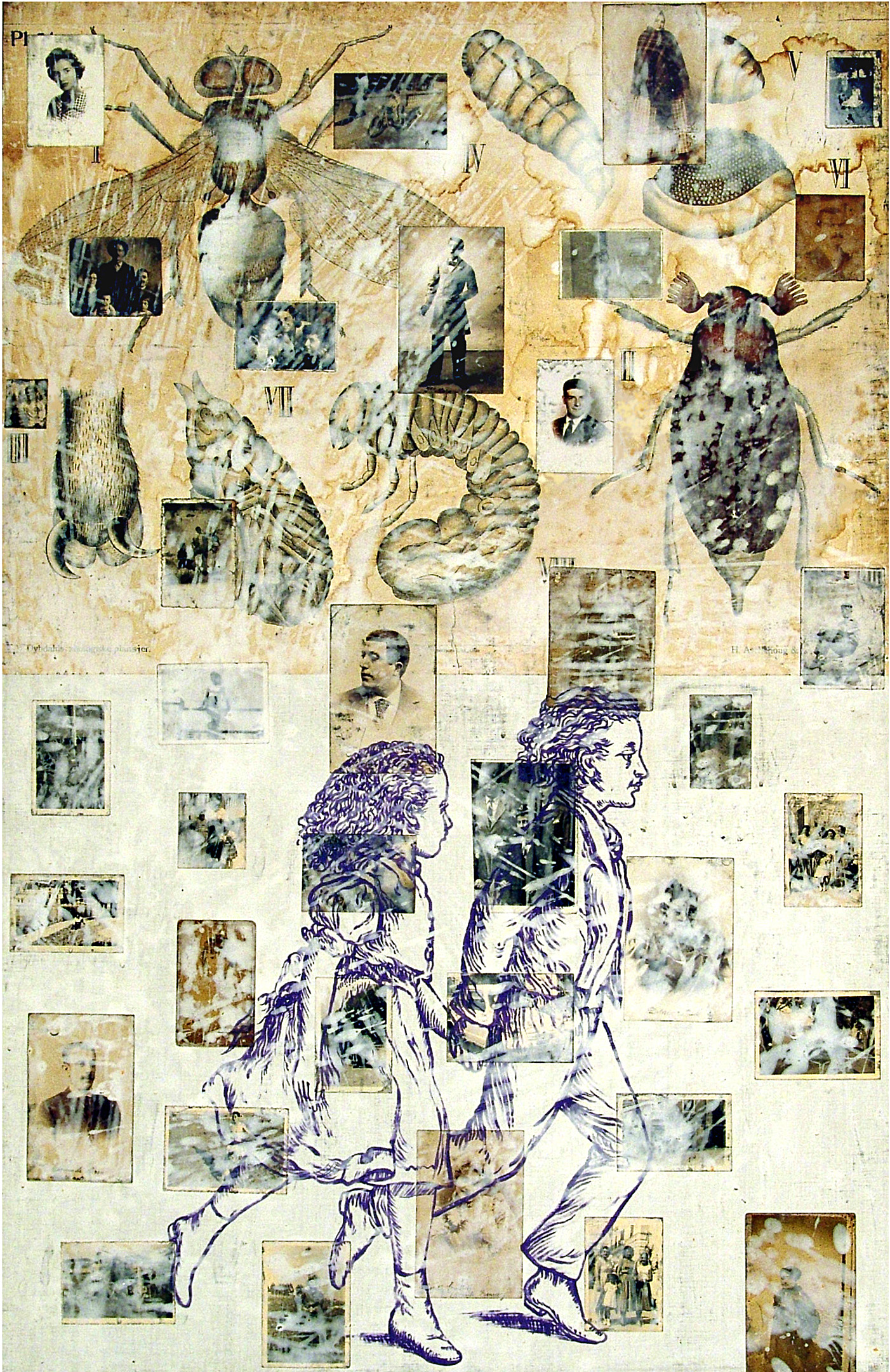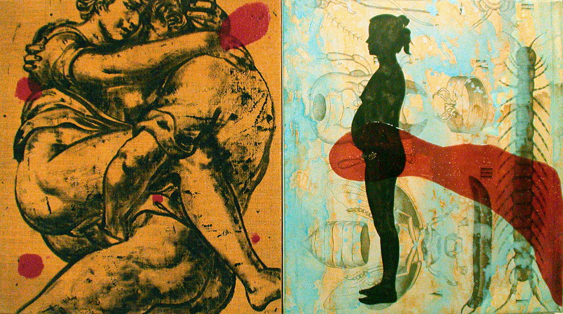 Title. ‘Twins‘ 2004 casein, and mixed media, paper mounted on canvas,46×63.5 inches