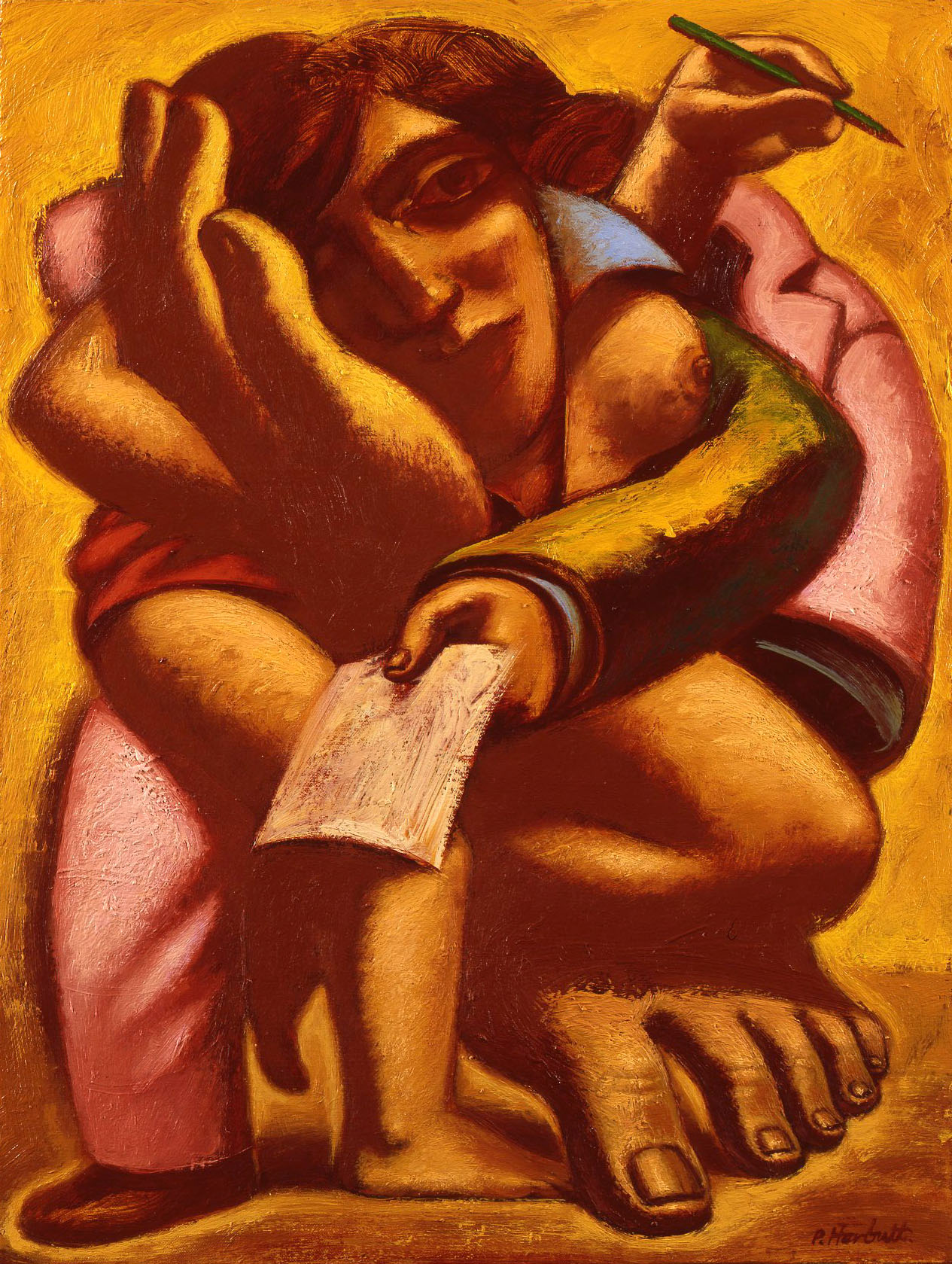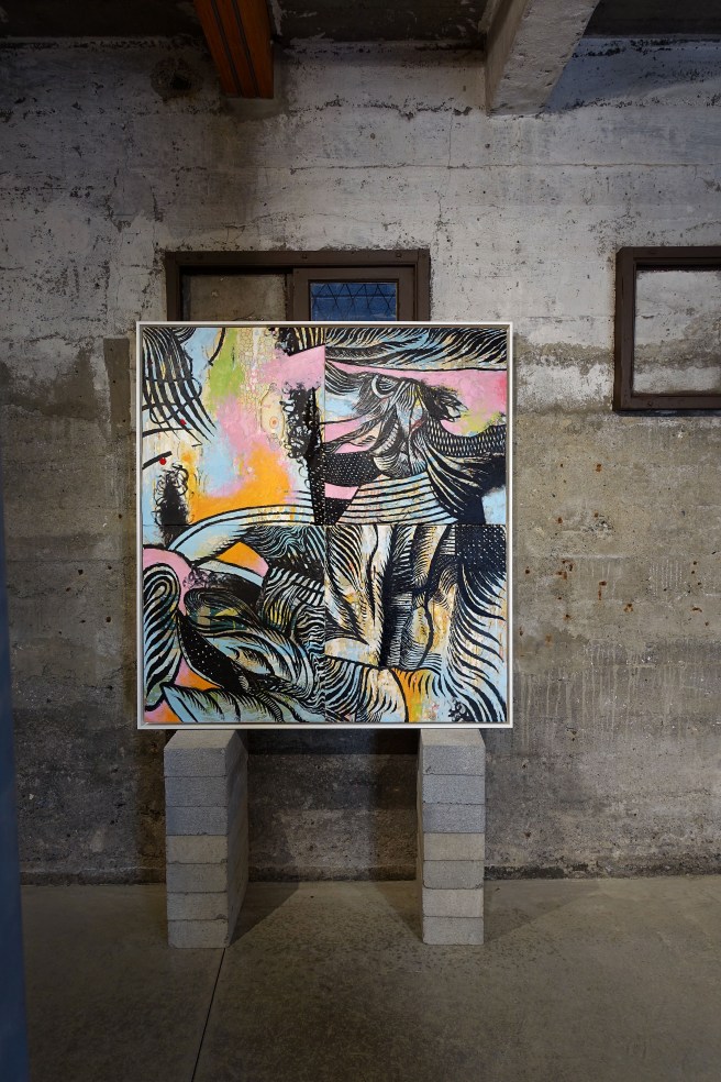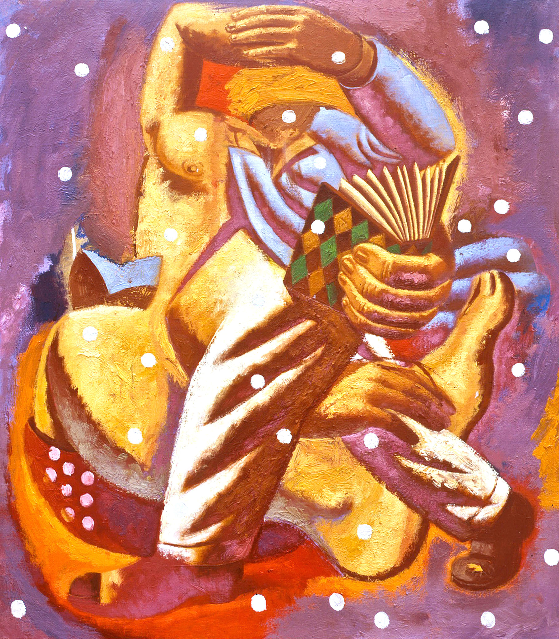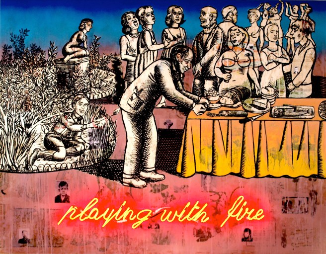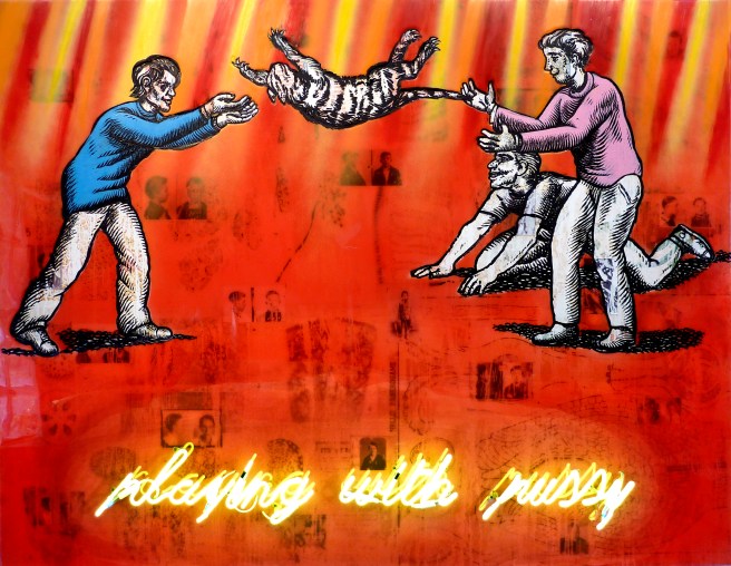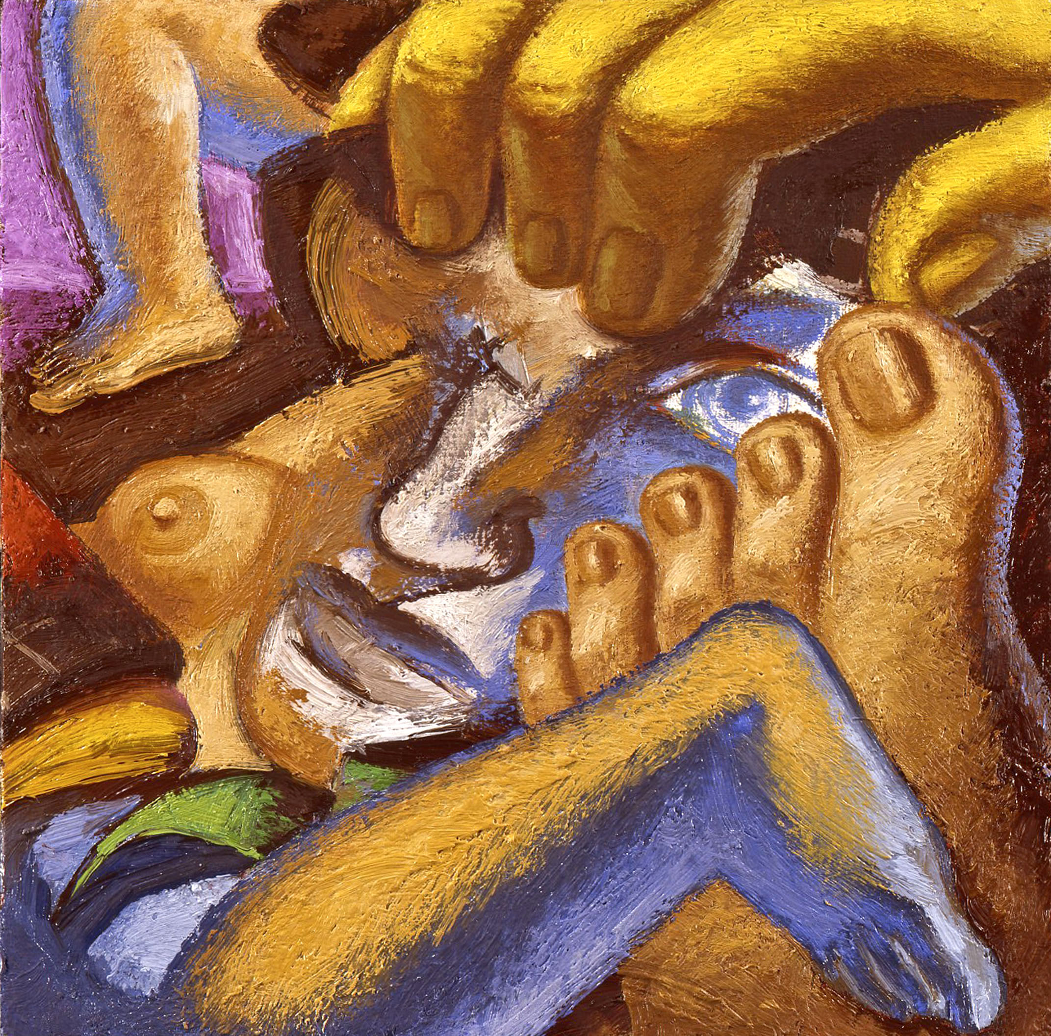 Title. ‘Twins‘ 2004 casein, and mixed media, paper mounted on canvas,46×63.5 inches