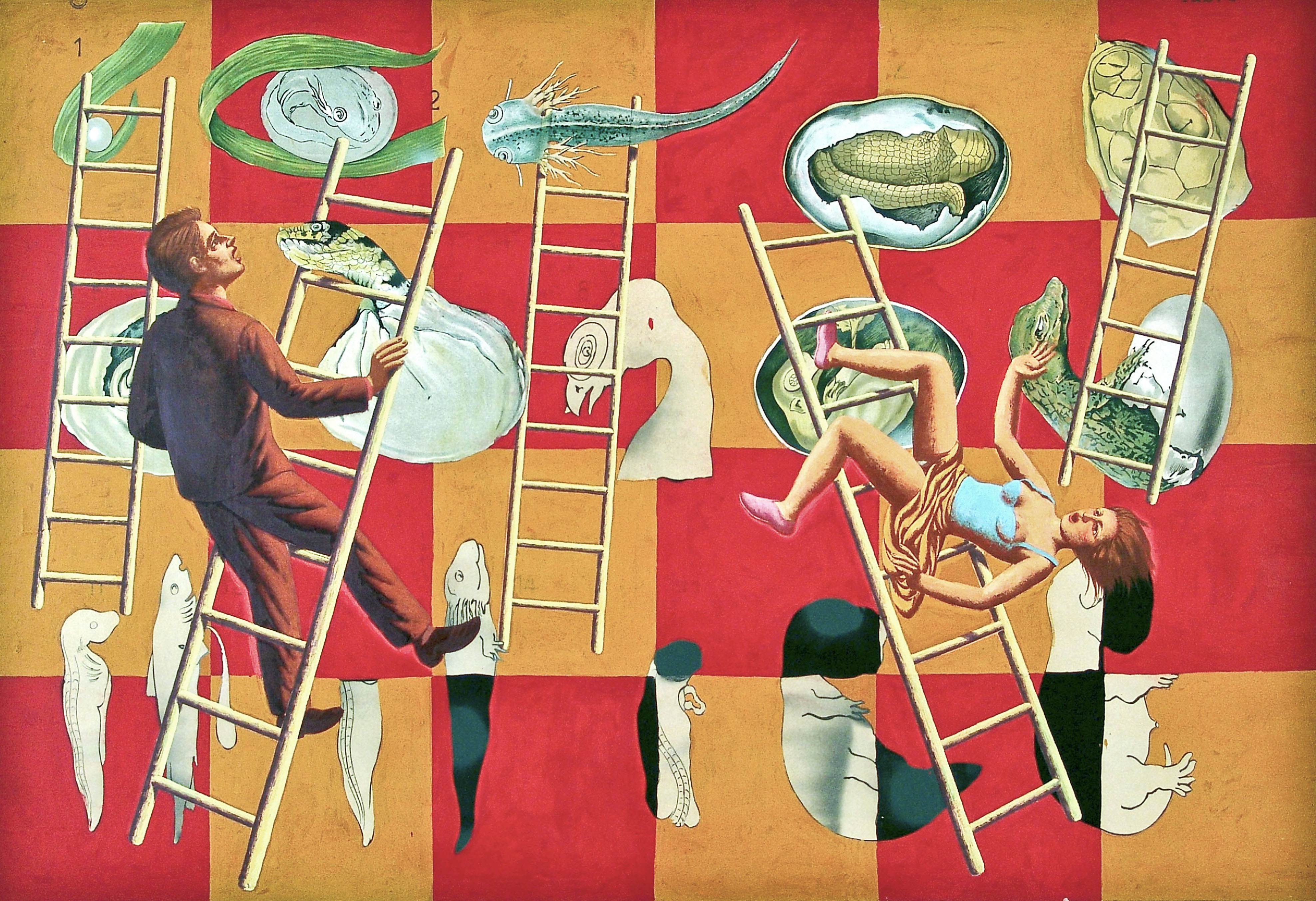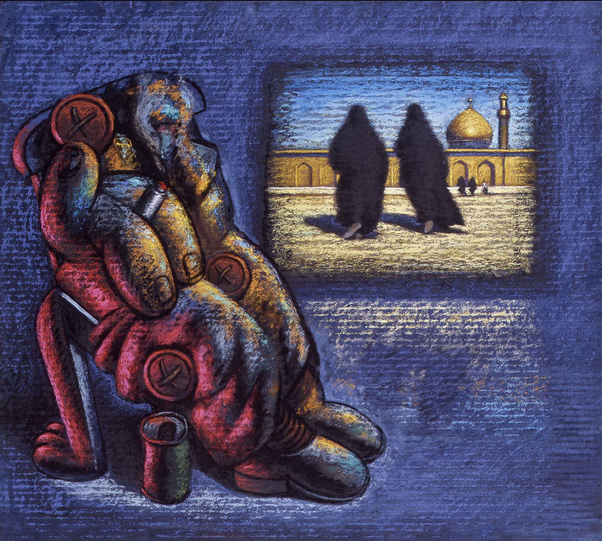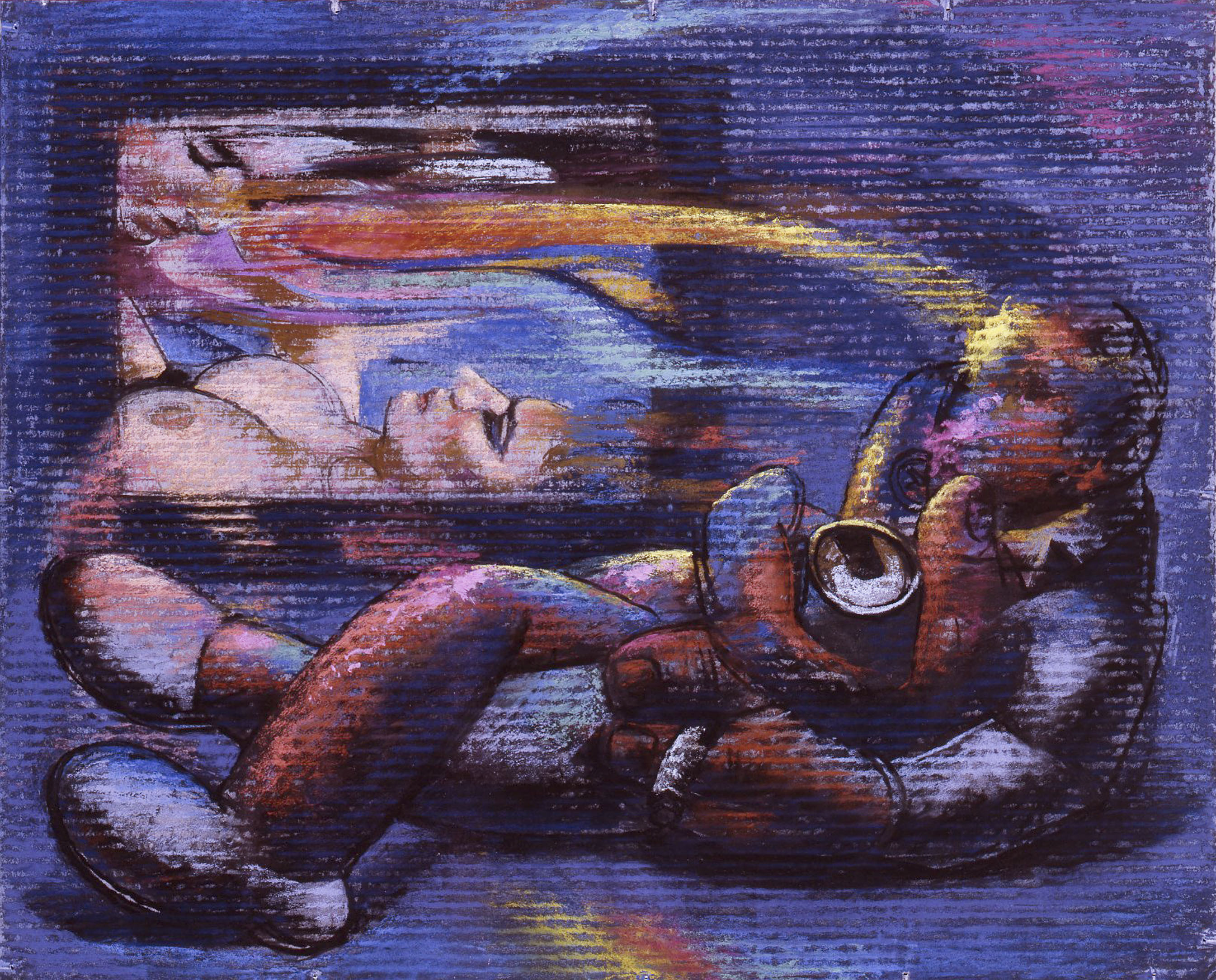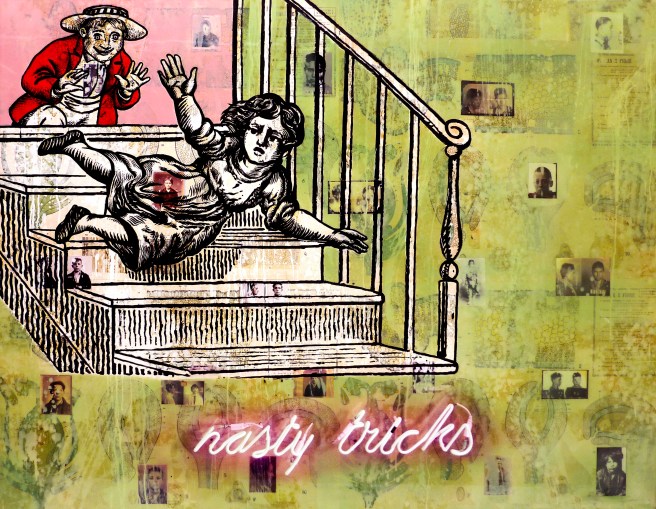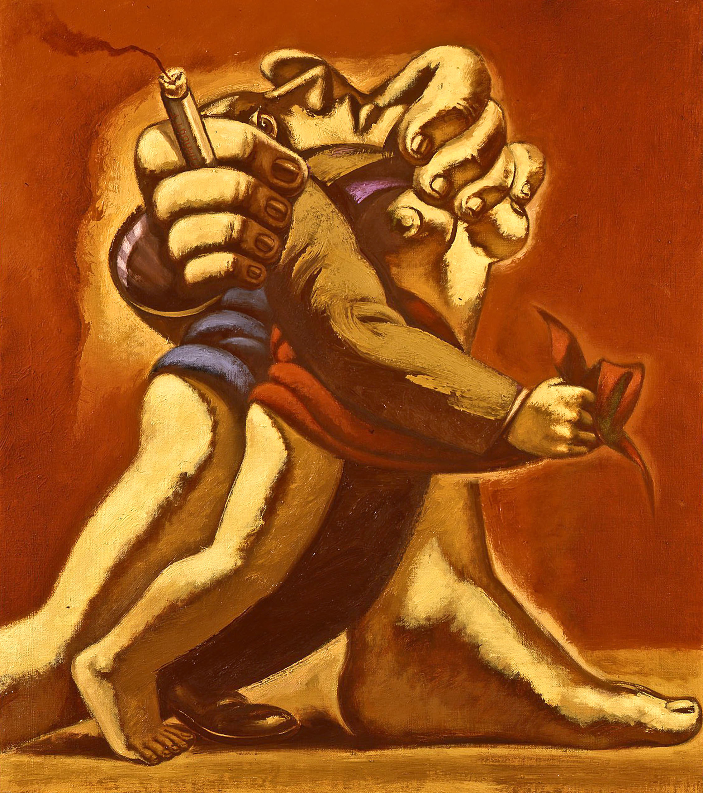 Title. ‘Twins‘ 2004 casein, and mixed media, paper mounted on canvas,46×63.5 inches