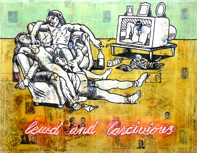 Title. Twins II 2006.oil and mixed media on canvas 63 x 79 inches