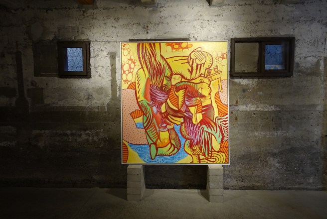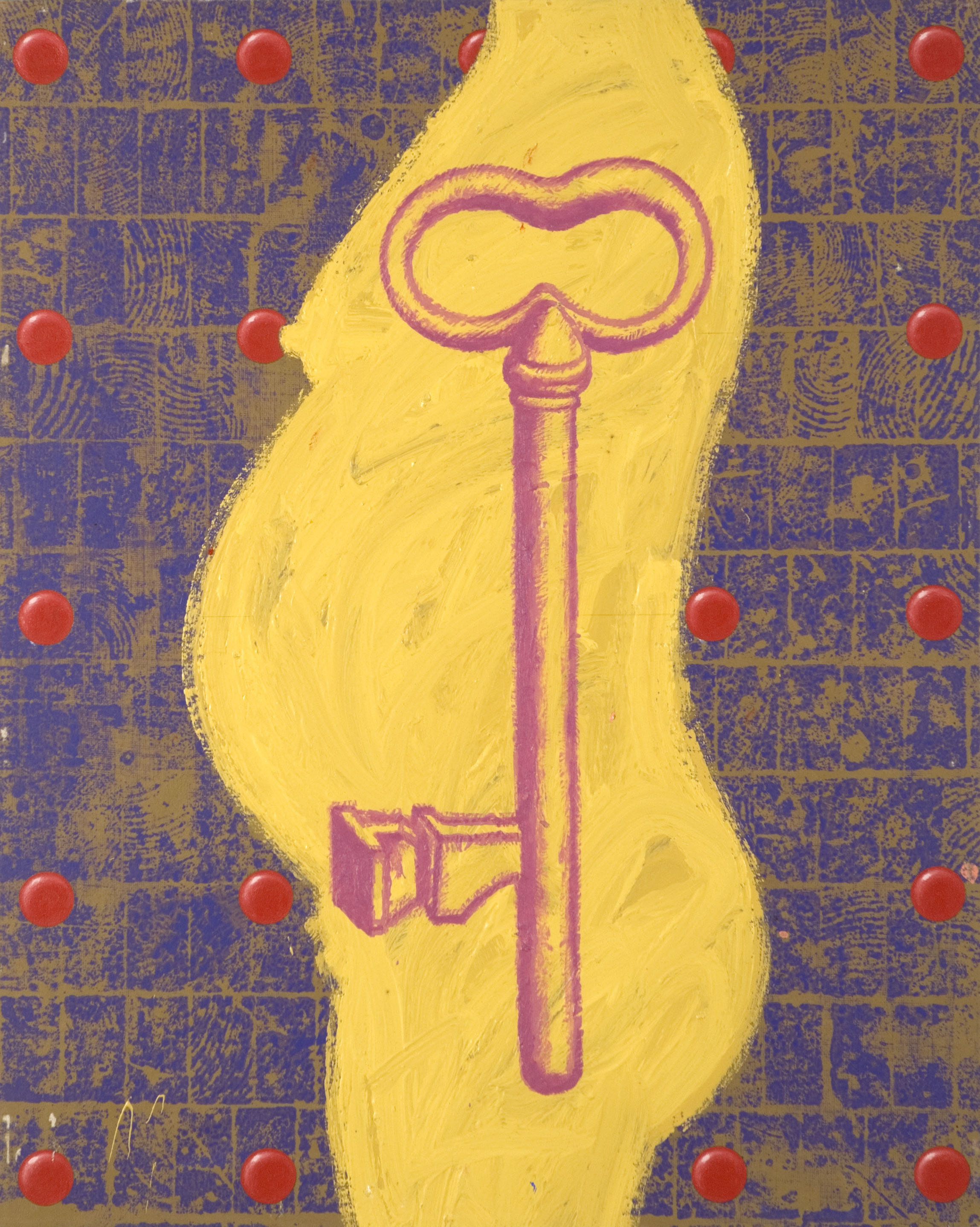 Title. Heart on His Sleeve 2006 oil, aplique, and mixed media on canvas 75 x 79 inches